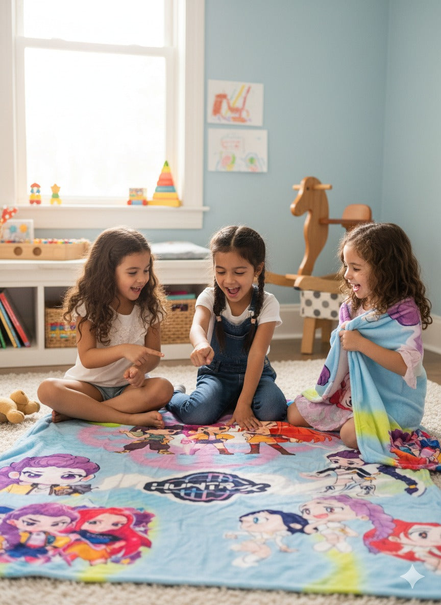 Nubi 3Pack Navideño de Guerreras Kpop: 1 Frazada Matrimonial + 1 Set de 6 Figuras + 1 Peluche 45cm + Envío Express Gratis